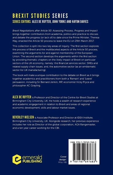 This book aims to bring together contributors from academia, politics and practice to discuss and debate the progress (or lack of) to date since Prime Minister Theresa May enacted the Article 50 process to leave the EU on March 29th 2017.