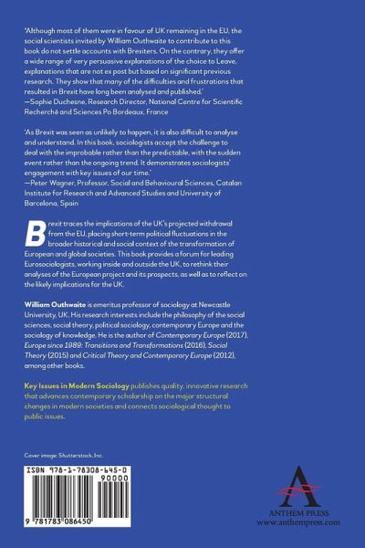 Preface by William Outhwaite Section 1. How Did It Happen? 1. The Increasing Inevitability of That Referendum - Martin Westlake 2. Vox Populi: Nationalism, Globalization and the Balance of Power in the Making of Brexit - Jonathan Hearn 3. Exit from the Perspective of Entry - John Holmwood 4. Brexit, Sovereignty and the End of an Ever Closer Union - Stefan Auer Section 2. The Politics of Brexit 5. Populism, Nationalism and Brexit - Craig Calhoun 6. A Tale of Two Constitutions: Whose Legitimacy? Whose Crisis? - Chris Thornhill 7. Locating Brexit in the Pragmatics of Race, Citizenship and Empire - Gurminder K. Bhambra 8. Globalization, Nationalism and the Changing Axes of Political Identity - Colin Crouch 9. A Divided Nation in a Divided Europe: Emerging Cleavages and the Crisis of European Integration - Gerard Delanty Section 3. Prospects For/ After Brexit 10. The EU and Brexit: Processes, Perspectives and Prospects - Tim Oliver 11. The Impossibility of Disentangling Integration - Antje Wiener 12. No Exit from Brexit? - Simon Susen 13. Critical Theory, Brexit and the Vicissitudes of Political Economy in the Twenty- First Century - Harry F. Dahms 14. European Union versus European Society: Sociologists on 'Brexit' and the 'Failure' of Europeanization - Adrian Favell Notes on Contributors Index.