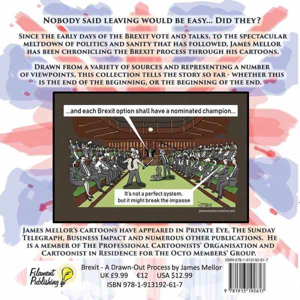 Nobody said leaving would be easy... did they? Brexit: A Drawn Out Process is a collection of James Mellor's political cartoons from the referendum, the negotiations, the countdown to the Brexit-Day-that-wasn't, and beyond. This cartoon compilation tells the story of Brexit, with its deal and derailments, its splits and the spats, and features a familiar cast of hopeless politicians, bemused onlookers and anthropomorphic animals. In a book which crosses red lines, fails six tests, and crashes headlong into a backstop, James Mellor's cartoons chronicle the Brexit story (so far...). James Mellor's cartoons have appeared in Private Eye, The Sunday Telegraph, Business Impact and numerous other publications. He is the associate illustrator for Lea Graham Ltd. and cartoonist in residence for the financial services community, Octo Members Group.