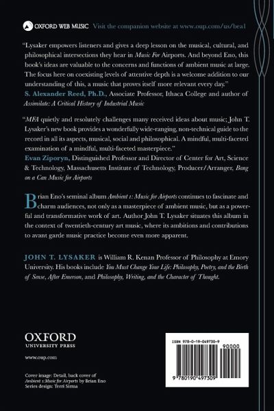 Brian Eno's seminal album Ambient 1: Music for Airports continues to fascinate and charm audiences, not only as a masterpiece of ambient music, but as a powerful and transformative work of art. Author John T. Lysaker situates this album in the context of twentieth-century art music, where its ambitions and contributions to avant garde music practice become even more apparent.