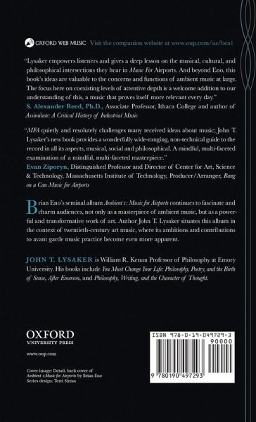 Brian Eno's seminal album Ambient 1: Music for Airports continues to fascinate and charm audiences, not only as a masterpiece of ambient music, but as a powerful and transformative work of art. Author John T. Lysaker situates this album in the context of twentieth-century art music, where its ambitions and contributions to avant garde music practice become even more apparent.