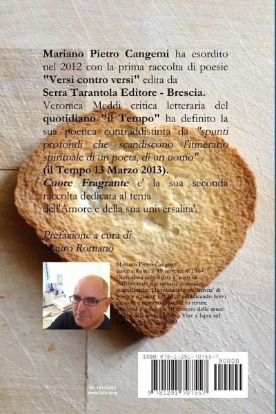 Poesie d'Amore In questa raccolta di poesie l'autore esprime la fragranza del sentimento che accomuna tutti senza distinzione alcuna.Quale sentimento rende tutti uguali se non l'Amore inteso come Amore Universale nelle sue varie declinazioni:la persona amata, un genitore, un figlio, la natura. Nei versi di questa raccolta, in particolare, emerge l'istantaineita' del dialogo con la persona amata e tale peculiarita' conferisce alla lirica delle poesie di questa silloge, la croccante leggerezza della vita.