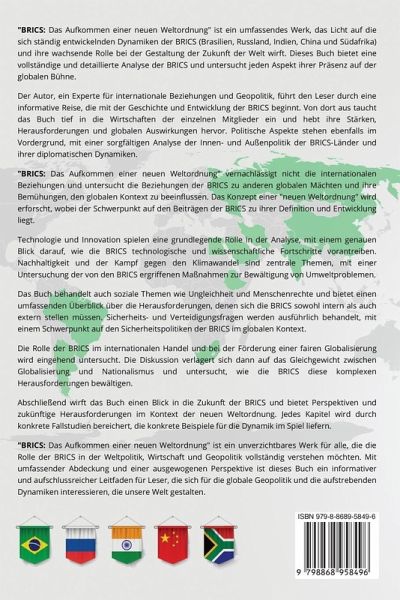 "BRICS: Das Aufkommen einer neuen Weltordnung" ist ein umfassendes Werk, das Licht auf die sich ständig entwickelnden Dynamiken der BRICS (Brasilien, Russland, Indien, China und Südafrika) und ihre wachsende Rolle bei der Gestaltung der Zukunft der Welt wirft. Dieses Buch bietet eine vollständige und detaillierte Analyse der BRICS und untersucht jeden Aspekt ihrer Präsenz auf der globalen Bühne. Der Autor, ein Experte für internationale Beziehungen und Geopolitik, führt den Leser durch eine informative Reise, die mit der Geschichte und Entwicklung der BRICS beginnt. Von dort aus taucht das Buch tief in die Wirtschaften der einzelnen Mitglieder ein und hebt ihre Stärken, Herausforderungen und globalen Auswirkungen hervor. Politische Aspekte stehen ebenfalls im Vordergrund, mit einer sorgfältigen Analyse der Innen- und Außenpolitik der BRICS-Länder und ihrer diplomatischen Dynamiken. "BRICS: Das Aufkommen einer neuen Weltordnung" vernachlässigt nicht die internationalen Beziehungen und untersucht die Beziehungen der BRICS zu anderen globalen Mächten und ihre Bemühungen, den globalen Kontext zu beeinflussen. Das Konzept einer "neuen Weltordnung" wird erforscht, wobei der Schwerpunkt auf den Beiträgen der BRICS zu ihrer Definition und Entwicklung liegt. Technologie und Innovation spielen eine grundlegende Rolle in der Analyse, mit einem genauen Blick darauf, wie die BRICS technologische und wissenschaftliche Fortschritte vorantreiben. Nachhaltigkeit und der Kampf gegen den Klimawandel sind zentrale Themen, mit einer Untersuchung der von den BRICS ergriffenen Maßnahmen zur Bewältigung von Umweltproblemen. Das Buch behandelt auch soziale Themen wie Ungleichheit und Menschenrechte und bietet einen umfassenden Überblick über die Herausforderungen, denen sich die BRICS sowohl intern als auch extern stellen müssen. Sicherheits- und Verteidigungsfragen werden ausführlich behandelt, mit einem Schwerpunkt auf den Sicherheitspolitiken der BRICS im globalen Kontext. Die Rolle der BRICS im internationalen Handel und bei der Förderung einer fairen Globalisierung wird eingehend untersucht. Die Diskussion verlagert sich dann auf das Gleichgewicht zwischen Globalisierung und Nationalismus und untersucht, wie die BRICS diese komplexen Herausforderungen bewältigen. Abschließend wirft das Buch einen Blick in die Zukunft der BRICS und bietet Perspektiven und zukünftige Herausforderungen im Kontext der neuen Weltordnung. Jedes Kapitel wird durch konkrete Fallstudien bereichert, die konkrete Beispiele für die Dynamik im Spiel liefern. "BRICS: Das Aufkommen einer neuen Weltordnung" ist ein unverzichtbares Werk für alle, die die Rolle der BRICS in der Weltpolitik, Wirtschaft und Geopolitik vollständig verstehen möchten. Mit umfassender Abdeckung und einer ausgewogenen Perspektive ist dieses Buch ein informativer und aufschlussreicher Leitfaden für Leser, die sich für die globale Geopolitik und die aufstrebenden Dynamiken interessieren, die unsere Welt gestalten.
