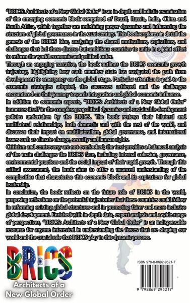 "BRICS: Architects of a New Global Order" is an in-depth and holistic examination of the emerging economic block comprised of Brazil, Russia, India, China and South Africa, which together are redefining power dynamics and influencing the structure of global governance in the 21st century. This book explores in detail the genesis of the BRICS bloc, analyzing the shared motivations, aspirations, and challenges that led these diverse but ambitious countries to unite in a joint effort to reform the world economic and political order. Through an engaging narrative, the book outlines the BRICS economic growth trajectory, highlighting how each member state has navigated the path from development to emergency on the global stage. Particular attention is paid to the economic strategies adopted, the successes achieved and the challenges encountered on their journey towards integration and global economic influence. In addition to economic aspects, "BRICS: Architects of a New Global Order" immerses itself in the complex geopolitical dynamics and sustainable development policies undertaken by the BRICS. The book reviews their bilateral and multilateral relationships, both domestic and with the rest of the world, and discusses their impact on multilateralism, global governance, and international issues such as climate change, security and human rights. Criticism and controversy are not overlooked; the text provides a balanced analysis of the main challenges the BRICS face, including internal cohesion, governance, environmental practices and the social impact of their rapid growth. Through this critical assessment, the book aims to offer a nuanced understanding of the complexities that characterize this economic block and its aspirations for global leadership. In conclusion, the book reflects on the future role of BRICS in the world, proposing reflections on the potential trajectories that these countries could follow in reforming existing global structures and in promoting fairer and more inclusive global development. Enriched with in-depth data, expert analysis and a wide range of perspectives, "BRICS: Architects of a New Global Order" is an indispensable resource for anyone interested in understanding the forces that are shaping our world and the crucial role that BRICS play in this dynamic process.