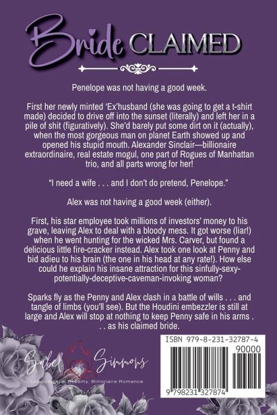 The Bridal series are the stories of gorgeous and successful Alpha Males and the sassy women they choose as brides. Although some characters will appear in other books in the series, all of them are standalone novels. In Bride Claimed, Book 1, we meet billionaire Alexander Sinclair who might have done the wrong thing to claim the delectable Penelope Winters as his bride. Penelope was not having a good week. First her newly minted 'Ex'husband (she was going to get a t-shirt made) decided to drive off into the sunset (literally) and left her in a pile of shit (figuratively). She'd barely put some dirt on it (actually), when the most gorgeous man on planet Earth showed up and opened his stupid mouth. Alexander Sinclair-billionaire extraordinaire, real estate mogul, one part of Rogues of Manhattan trio, and all parts wrong for her! "I need a wife... and I don't do pretend, Penelope." Alex was not having a good week (either). First, his star employee took millions of investors' money to his grave, leaving Alex to deal with a bloody mess. It got worse (liar!) when he went hunting for the wicked Mrs. Carver but found a delicious little firecracker instead. Alex took one look at Penny and bid adieu to his brain (the one in his head at any rate!). How else could he explain his insane attraction for this sinfully-sexy-potentially-deceptive-caveman-invoking woman? Sparks fly as Penny and Alex clash in a battle of wills... and tangle of limbs (you'll see). But the Houdini embezzler is still at large, and Alex will stop at nothing to keep Penny safe in his arms... as his bride claimed. Please note: This book was previously published under my pen name, Linzi Basset, with the title, Claimed Bride.