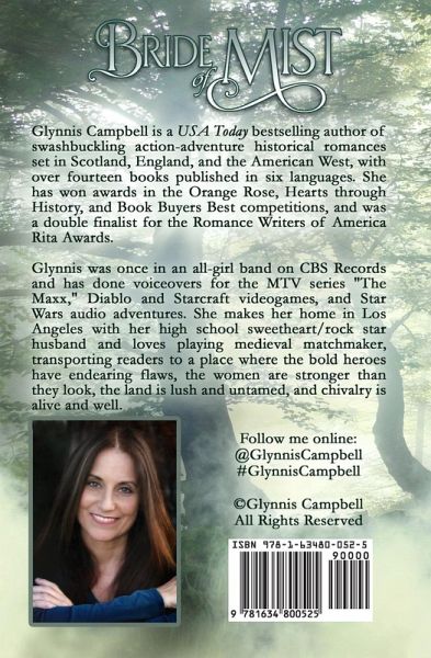 AI-FREE! 100% certified organic author-created content. No artificial intelligence was used in the writing of this book. From USA Today bestselling author Glynnis Campbell...A beautiful and deadly warrior lass tracks down a savage Highlander and targets him for assassination, until she learns he's not the villain he seems, but a noble laird desperate to win back both his tormented clan and her precious heart. After a Highlander savagely attacks her clan, mysterious and elusive Feiyan la Nuit knows she is the only warrior lass with the skills to track down the villain--and the nerve to assassinate him. But when she flinches at coldblooded murder, he seizes the advantage, unmasking her and taking her hostage. The son of a laird, Dougal mac Darragh never intended to wage war with the infamous Rivenlochs, nor is he the kind of man to hurt a lass, but now his only hope to keep his clan safe is to ransom his beautiful captive. Soon a brutal secret comes to light, one that threatens both their clans, and they discover that only by joining forces--and hearts--in a desperate battle will they truly prove that love conquers all. BRIDE OF MIST Book 3 of The Warrior Daughters of Rivenloch One bride of Fire... One bride of Ice... One bride of Mist... Born into the Rivenloch clan of warriors, Jenefer, Hallidis, and Feiyan, three fearless and fierce Scots lasses, are ready to battle the world, until heart-melting heroes arrive to challenge the spirited brides, storming their defenses and winning their hearts with the power of love.