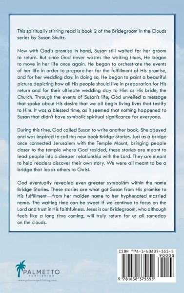 This spiritually stirring read is book 2 of the Bridegroom in the Clouds series by Susan Shultz. Now with God's promise in hand, Susan still waited for her groom to return. But since God never wastes the waiting times, He began to move in her life once again. He began to orchestrate the events of her life in order to prepare her for the fulfillment of His promise, and for her wedding day. In doing so, He began to paint a beautiful picture depicting how all His people should live in preparation for His return and for their ultimate wedding day to Him as His bride, the Church. Through the events of Susan's life, God unveiled a message that spoke about His desire that we all begin living lives that testify to Him. It was a blessed time, as it seemed that nothing happened to Susan that didn't have symbolic spiritual significance for everyone. During this time, God called Susan to write another book. She obeyed and was inspired to call this new book Bridge Stories. Just as a bridge once connected Jerusalem with the Temple Mount, bringing people closer to the temple where God resided, these stories are meant to lead people into a deeper relationship with the Lord. They are meant to help readers discover their own story. We were all meant to be a bridge that leads others to Christ. God eventually revealed even greater symbolism within the name Bridge Stories. These stories are what got Susan from His promise to His fulfillment-from her maiden name to her hyphenated married name. The waiting time can be sweet if we continue to focus on the Lord and trust in His faithfulness. Jesus is our Bridegroom, who although feels like a long time coming, will truly return for us all someday on the clouds.