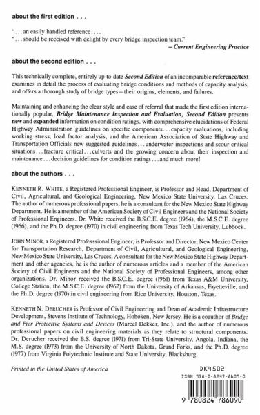 "Second Edition examines in detail the process of evaluating bridge conditions and offers a thorough study of bridge types - their origins, elements, and failures. Bridge Maintenance Inspection and Evaluation, Second Edition presents new and expanded information on condition ratings, capacity evaluations, load factor analysis, and the American Association of State Highway and Transportation Officials (AASHTO) suggested guidelines. "