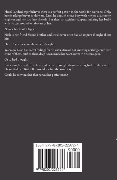 Hazel Landenberger believes there is a perfect person in the world for everyone. Only, hers is taking forever to show up. Until he does, she stays busy with her job as a county engineer and her two best friends. But then, an accident happens, injuring her badly with no one around to take care of her. No one but Nash Hayes. Nash is her friend Sloan's brother and she'd never once had an impure thought about him. He can't say the same about her, though. Years ago, Nash had secret feelings for his sister's friend, but knowing nothing could ever come of them, pushed them deep down inside his heart, never to be seen again. Or so he'd thought. But seeing her in the ER, hurt and in pain, brought them barreling back to the surface. He wanted her. Badly. But would she feel the same way? Could he convince her that he was her perfect man?