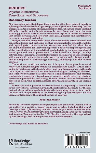 Introduction Prologue 1. Jung: Rrebel son or prophet? 2. Conflict: Combat or dance of the soul? 3. The role of self-awareness in a changing culture 4. Moral values and analytic insights Bridges: Intrapsychic Structures and functions 5. Penis as bridge 6. Gods and deintegrates 7. Archetypes on the couch 8. The location of archetypal experience 9. Big self, little self, and individuation 10. The drive towards death: A vector of the self 11. Symbols: Content and process Bridges Broken: Clinical Experience and Practice 12. Projective identification 13. Transference as fulcrum of analysis 14. Countertransference: The twinning of Eros and Agape 15. Narcissism and the self: Who am I that I love? 16. Masochism: The shadow of veneration and worship 17. Paedophilia: Normal and abnormal 18. Curing and healing Bridges Built: Creativity and the Arts 19. Birth and creativity 20. Creativity and therapy 21. Creativity and archetype 22. The drive towards death: A vector of the self 23. Look! He has come through! 24. Jung's concept of synchronicity 25. Creativity in the second half of life
