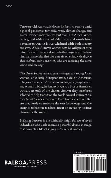 Ten-year-old Aunewu is doing his best to survive amid a global pandemic, territorial wars, climate change, and animal extinction within the vast terrain of Africa. When he is gifted with a remarkable vision and words from a greater power, he is overwhelmed with both anxiety and awe. While Aunewu worries how he will present the information to the world and whether anyone will believe him, he has no idea that there are six other individuals, one chosen from each continent, who are receiving the same vision and message. The Great Source has also sent messenges to a young Asian woman, an elderly European man, a South American religious leader, an Australian zoologist, a geophysicist and scientist living in Antarctica, and a North American woman. As each of the chosen discover they have been selected to help transition the world toward resurrection, they travel to a destination to learn from each other. But are they ready to embrace the vast knowledge and energies to become teachers intent on initiating positive change for the world? Bridging Between is the spiritually insightful tale of seven individuals who each receive a powerful divine message that prompts a life-changing catechetical journey.