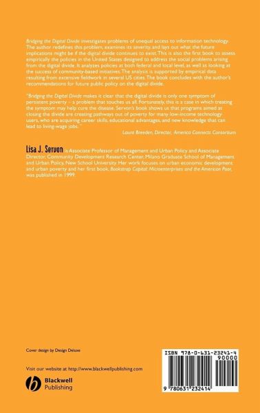 'Bridging the Digital Divide makes it clear that thedigital divide is only one symptom of persistent poverty -- aproblem that touches us all. Fortunately, this is a case in whichtreating the symptom may help cure the disease. Servon's bookshows us that programs aimed at closing the divide are creatingpathways out of poverty for many low-income technology users, whoare acquiring career skills, educational advantages, and newknowledge that can lead to living-wage jobs'. LauraBreeden, Director, America Connects Consortium