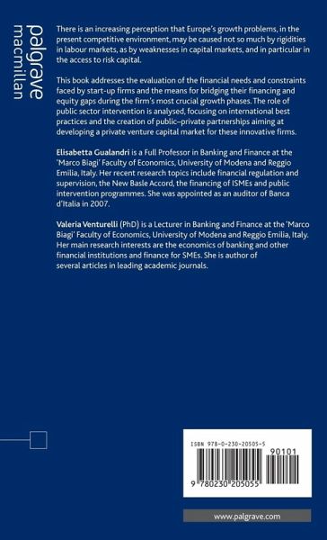 List of Tables List of Figures List of Boxes Acronyms and Abbreviations About the Authors Preface and Acknowledgements Introduction; E. Gualandri and V . Venturelli Innovation and economic growth; E . Gualandri and V. Venturelli Access to Finance of Innovative SMEs; V . Venturelli Equity gap and innovatives smes; E . Gualandri An original equity requirement estimation model; L . Canovi and V . Venturelli The intermediaries in the risk capital industry; A . G. Grasso Size and evolution of the risk capital industry; A . G. Grasso The role of equity markets; F. Braga and M. Demasi The role of the public sector; E . Gualandri and P . Schwizer Bibliography Index Notes