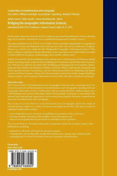 The papers published in the AGILE 2012 LNG&C volume contribute substantially to Geographical Information Science developments and to the success of the 15th AGILE conference (Avignon, France, 24-27April, 2012) under the title 'Bridging the Geographic Information Sciences'. This year's conference emphasizes that geoinformation science, geomatics and spatial analysis are fields in which different disciplines, epistemologies and scientific cultures meet.