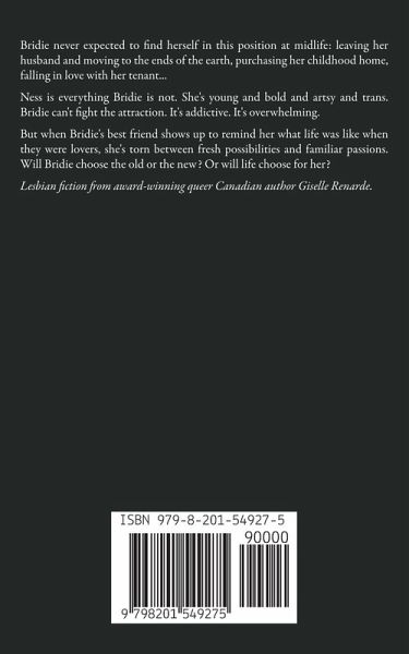 Bridie never expected to find herself in this position at midlife: leaving her husband and moving to the ends of the earth, purchasing her childhood home, falling in love with her tenant... Ness is everything Bridie is not. She's young and bold and artsy and trans. Bridie can't fight the attraction. It's addictive. It's overwhelming. But when Bridie's best friend shows up to remind her what life was like when they were lovers, she's torn between fresh possibilities and familiar passions. Will Bridie choose the old or the new? Or will life choose for her? Lesbian fiction from award-winning queer Canadian author Giselle Renarde.