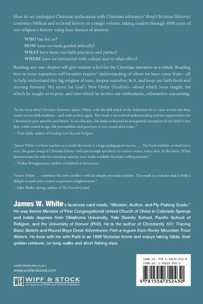 How do we undergird Christian enthusiasm with Christian substance? Brief Christian Histories combines biblical and ecclesial history in a single volume, taking readers through 4000 years of our religion's history using four themes of interest: WHO has led us? HOW have we been guided ethically? WHAT have been our faith practices and pieties? WHERE have we interacted with culture, and to what effect? Reading any one chapter will give readers a feel for the Christian narrative as a whole. Reading two or more narratives will broaden readers' understanding of where we have come from--all to help understand this big religion of ours, deepen ourselves in it, and keep our faith fresh and moving forward. We move for God's New Order (basileia)--about which Jesus taught, for which he taught us to pray, and into which he invites our enthusiastic, substantive sojourning.