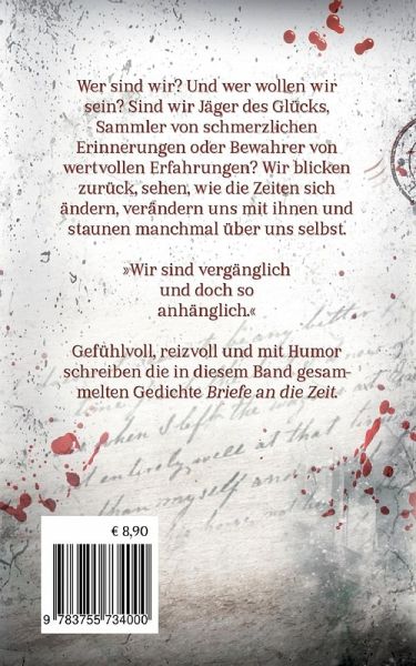 Wer sind wir? Und wer wollen wir sein? Sind wir Jäger des Glücks, Sammler von schmerzlichen Erinnerungen oder Bewahrer von wertvollen Erfahrungen? Wir blicken zurück, sehen, wie die Zeiten sich ändern, verändern uns mit ihnen und staunen manchmal über uns selbst.»Wir sind vergänglich und doch so anhänglich.«Gefühlvoll, reizvoll und mit Humor schreiben die in diesem Band gesammelten Gedichte Briefe an die Zeit.
