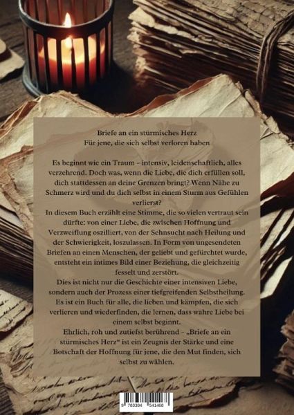 Briefe an ein stürmisches HerzFür jene, die sich selbst verloren habenEs beginnt wie ein Traum - intensiv, leidenschaftlich, alles verzehrend. Doch was, wenn die Liebe, die dich erfüllen soll, dich stattdessen an deine Grenzen bringt? Wenn Nähe zu Schmerz wird und du dich selbst in einem Sturm aus Gefühlen verlierst?In diesem Buch erzählt eine Stimme, die so vielen vertraut sein dürfte: von einer Liebe, die zwischen Hoffnung und Verzweiflung oszilliert, von der Sehnsucht nach Heilung und der Schwierigkeit, loszulassen. In Form von ungesendeten Briefen an einen Menschen, der geliebt und gefürchtet wurde, entsteht ein intimes Bild einer Beziehung, die gleichzeitig fesselt und zerstört.Dies ist nicht nur die Geschichte einer intensiven Liebe, sondern auch der Prozess einer tiefgreifenden Selbstheilung. Es ist ein Buch für alle, die lieben und kämpfen, die sich verlieren und wiederfinden, die lernen, dass wahre Liebe bei einem selbst beginnt.Ehrlich, roh und zutiefst berührend - "Briefe an ein stürmisches Herz" ist ein Zeugnis der Stärke und eine Botschaft der Hoffnung für jene, die den Mut finden, sich selbst zu wählen.