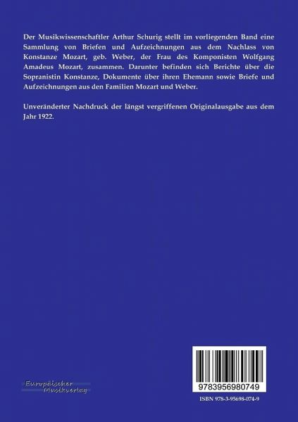 Der Musikwissenschaftler Arthur Schurig stellt im vorliegenden Band eine Sammlung von Briefen und Aufzeichnungen aus dem Nachlass von Konstanze Mozart, geb. Weber, der Frau des Komponisten Wolfgang Amadeus Mozart, zusammen. Darunter befinden sich Berichte über die Sopranistin Konstanze, Dokumente über ihren Ehemann sowie Briefe und Aufzeichnungen aus den Familien Mozart und Weber. Unveränderter Nachdruck der längst vergriffenen Originalausgabe aus dem Jahr 1922.
