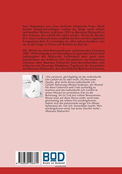 Suri Nagamma war eine einfache telugische Frau. Nach harten Schicksalsschlägen suchte sie lange nach einem spirituellen Meister und kam 1941 zu Ramana Maharshi in den Ashram. Sie verließ ihn nicht wieder. Wenn ihr Bruder D.S. Sastri zu Besuch kam, erzählte sie ihm von den täglichen Ereignissen dort. Er ermutigte sie, alles aufzuschreiben, was sie in der Folge in Form dieser Briefe an ihn tat.Die 'Briefe aus dem Ramanashram' umfassen den Zeitraum 1945-1950 und geben ein lebendiges Zeugnis der letzten fünf Lebensjahre des Maharshi, beinhalten aber auch viele Geschichten aus früherer Zeit.