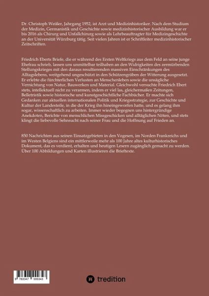In 850 Briefen beschrieb Friedrich Ebert sein Leben in den Schützengräben des Ersten Weltkriegs. Er lässt uns teilnehmen am Alltagsleben des Stellungskrieges in unangenehmen und widrigen, aber auch gemütlichen und behaglichen Situationen im Kreise der Kameraden, an seinen Gedanken zur Politik und Strategie des Krieges und die liebevolle Sehnsucht nach seiner Frau.