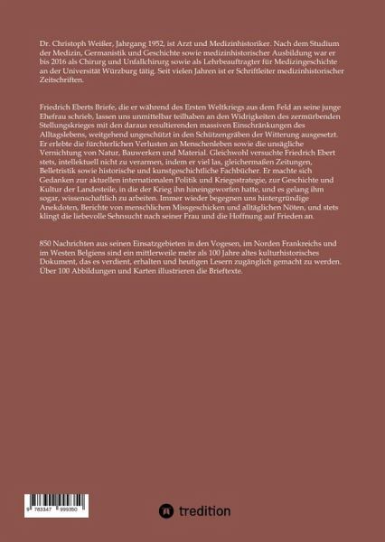 In 850 Briefen beschrieb Friedrich Ebert sein Leben in den Schützengräben des Ersten Weltkriegs. Er lässt uns teilnehmen am Alltagsleben des Stellungskrieges in unangenehmen und widrigen, aber auch gemütlichen und behaglichen Situationen im Kreise der Kameraden, an seinen Gedanken zur Politik und Strategie des Krieges und die liebevolle Sehnsucht nach seiner Frau.