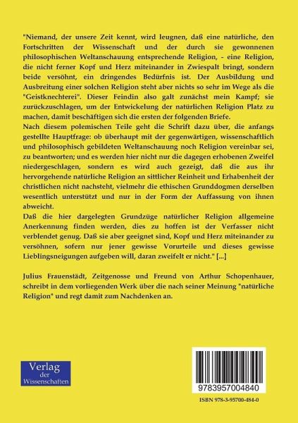 Julius Frauenstädt, Zeitgenosse und Freund von Arthur Schopenhauer, schreibt in dem vorliegenden Werk über die nach seiner Meinung "natürliche Religion" und regt damit zum Nachdenken an.