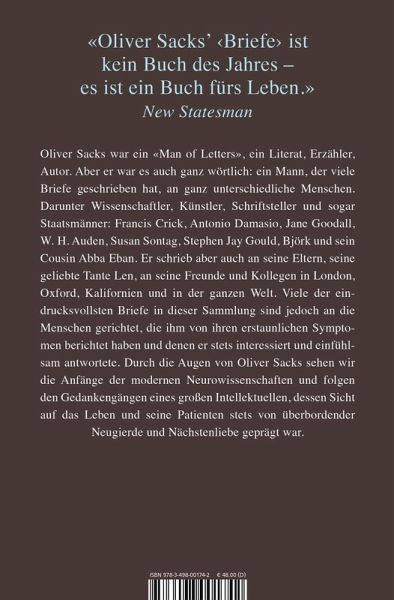 Oliver Sacks ist ein «Man of Letters». Ein Literat, ein Erzähler, ein Autor. Aber er ist es auch ganz wörtlich: ein Mann, der viele Briefe geschrieben hat, an ganz unterschiedliche Menschen. Darunter Wissenschaftler, Künstler, Schriftsteller und sogar Staatsmänner: Francis Crick, Antonio Damasio, Jane Goodall, W. H. Auden, Susan Sontag, Stephen Jay Gould, Björk und sein Cousin ersten Grades, Abba Eban. Viele der eindrucksvollsten Briefe in dieser Sammlung sind jedoch an die Menschen gerichtet, die ihm von ihren erstaunlichen Symptomen berichtet haben und denen er stets mit einem Gefühl der Großzügigkeit und des Staunens antwortete. Durch die Augen von Oliver Sacks sehen wir die Anfänge der modernen Neurowissenschaften und folgen den Gedankengängen eines der großen Intellektuellen unserer Zeit, dessen Sicht auf das Leben und seine Patienten stets von überbordender Neugierde und Nächstenliebe geprägt war.