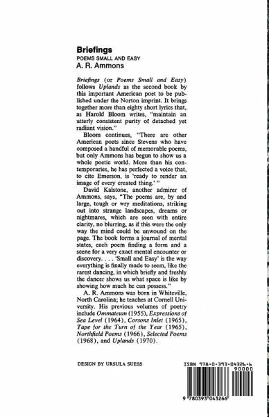 Briefings brings together more than eighty short lyrics that, as Harold Bloom writes, "maintain an utterly consistent purity of detached yet radiant vision."