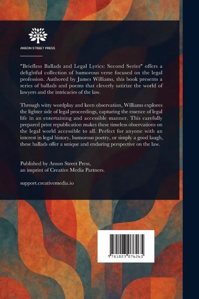 "Briefless Ballads and Legal Lyrics: Second Series" offers a delightful collection of humorous verse focused on the legal profession. Authored by James Williams, this book presents a series of ballads and poems that cleverly satirize the world of lawyers and the intricacies of the law. Through witty wordplay and keen observation, Williams explores the lighter side of legal proceedings, capturing the essence of legal life in an entertaining and accessible manner. This carefully prepared print republication makes these timeless observations on the legal world accessible to all. Perfect for anyone with an interest in legal history, humorous poetry, or simply a good laugh, these ballads offer a unique and enduring perspective on the law. This work has been selected by scholars as being culturally important, and is part of the knowledge base of civilization as we know it. This work is in the public domain in the United States of America, and possibly other nations. Within the United States, you may freely copy and distribute this work, as no entity (individual or corporate) has a copyright on the body of the work. Scholars believe, and we concur, that this work is important enough to be preserved, reproduced, and made generally available to the public. We appreciate your support of the preservation process, and thank you for being an important part of keeping this knowledge alive and relevant.