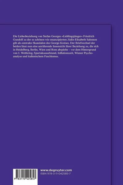 Die Liebesbeziehung von Stefan Georges "Lieblingsjünger", dem Heidelberger Germanisten Friedrich Gundolf (1880-1931), zu der so schönen wie emanzipierten Jüdin Elisabeth Salomon (1893-1958) gilt als zentrales Skandalon des George-Kreises. Der Briefwechsel der beiden lässt nun eine anrührende Innensicht ihrer Beziehung zu, die sich zwischen Heidelberg, Berlin, Wien und Rom abspielte - vor dem Hintergrund von Erstem Weltkrieg, Spartakusaufstand, Inflationszeit, Wiener Psychoanalyse und italienischem Faschismus.
