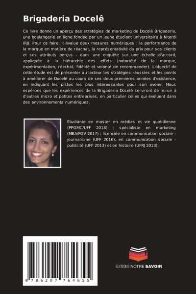 Ce livre donne un aperçu des stratégies de marketing de Docelê Brigaderia, une boulangerie en ligne fondée par un jeune étudiant universitaire à Niterói (RJ). Pour ce faire, il évalue deux mesures numériques : la performance de la marque en matière de réachat, la représentativité du prix pour ses clients et ses attributs perçus - dans une enquête sur une échelle d'accord, appliquée à la hiérarchie des effets (notoriété de la marque, expérimentation, réachat, fidélité et volonté de recommander). L'objectif de cette étude est de présenter au lecteur les stratégies réussies et les points à améliorer de Docelê au cours de ses deux premières années d'existence, en indiquant les pistes les plus intéressantes pour son avenir. Nous espérons que les expériences de la Brigaderia Docelê serviront de miroir à d'autres micro et petites entreprises, en particulier celles qui évoluent dans des environnements numériques.