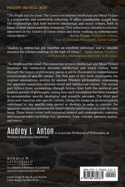 The Bright and the Good examines the connection between intellectual and moral virtues both through the history of philosophy and as it can be illustrated in comprehensive examinations of specific virtues. The first part of the book investigates the original assumptions posited by Ancient Western philosophers concerning the apparent connection between moral and intellectual virtues. The second part follows the assumptions through history from the Medieval and Modern periods of philosophy, noting how the assumption has been tweaked to accommodate specific ideological and scientific precepts. The third part showcases inquiries into specific virtues, taking the reader on an investigation unfettered by any specific time period or ideology so as to consider the apparent connection between the moral and the intellectual on a case-by-case basis. These essays relate both historical context and contemporary concerns and examine topics including vice, ignorance, hope, courage, patience, justice and mercy.
