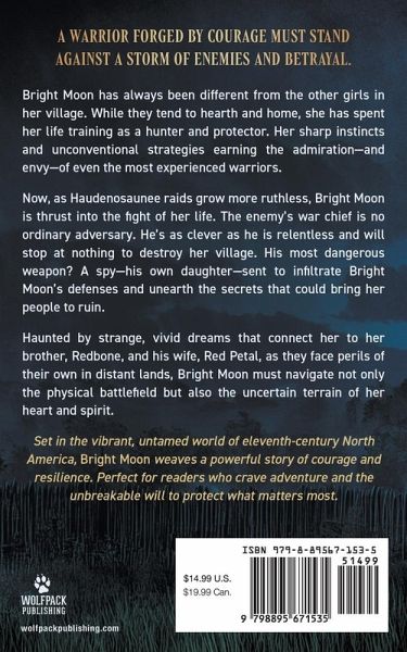 A warrior forged by courage must stand against a storm of enemies and betrayal. Bright Moon has always been different from the other girls in her village. While they tend to hearth and home, she has spent her life training as a hunter and protector. Her sharp instincts and unconventional strategies earning the admiration-and envy-of even the most experienced warriors. Now, as Haudenosaunee raids grow more ruthless, Bright Moon is thrust into the fight of her life. The enemy's war chief is no ordinary adversary. He's as clever as he is relentless and will stop at nothing to destroy her village. His most dangerous weapon? A spy-his own daughter-sent to infiltrate Bright Moon's defenses and unearth the secrets that could bring her people to ruin. Haunted by strange, vivid dreams that connect her to her brother, Redbone, and his wife, Red Petal, as they face perils of their own in distant lands, Bright Moon must navigate not only the physical battlefield but also the uncertain terrain of her heart and spirit. "...brings America's past alive with vibrant characters, intricate plotting, and an ever increasing tempo." -New York Times Bestselling Author W. Michael Gear, on Erik Haraldsson