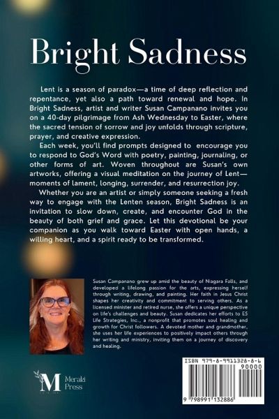Lent is a season of paradox-a time of deep reflection and repentance, yet also a path toward renewal and hope. In Bright Sadness, artist and writer Susan Campañano invites you on a 40-day pilgrimage from Ash Wednesday to Easter, where the sacred tension of sorrow and joy unfolds through scripture, prayer, and creative expression. Each week, you'll find prompts designed to encourage you to respond to God's Word with poetry, painting, journaling, or other forms of art. Woven throughout are Susan's own artworks, offering a visual meditation on the journey of Lent-moments of lament, longing, surrender, and resurrection joy. Whether you are an artist or simply someone seeking a fresh way to engage with the Lenten season, Bright Sadness is an invitation to slow down, create, and encounter God in the beauty of both grief and grace. Let this devotional be your companion as you walk toward Easter with open hands, a willing heart, and a spirit ready to be transformed.