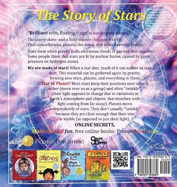 Embark on an unforgettable journey into the wonders of the cosmos with this award-winning picture book! Join a Native American child on an adventure to explore the mysteries of the universe, as you discover the magic of moons, meteors, constellations, and galaxies together. "Guides readers into a world that is eye-opening and page-turning!" - UP Authors (2014 cover design award winner) This STEM book is a perfect way to introduce young minds to our solar system and beyond (children 4 - 9, Pre-K - 4th grade). Kids will love the exciting finding activity and the challenge of distinguishing between planets and stars. With captivating images and engaging language, Bright Star Night Star inspires young readers to develop a lifelong love for science and astronomy.Online SECRETS and glossary Constellation finding activity Tongue twisters First Nations/American Indian characters Don't miss this children's science book with characters of color and rich illustrations of the night sky and heavenly bodies by Spanish illustrator Luis F. Sanz (Why Juan Can't Sleep: A Funny Mystery) that aid vocabulary comprehension. About 400 read-aloud words by best-selling author and college media instructor Karl Beckstrand (enjoy all 60 of his multiracial books). Discover Monument Valley and expose your child to the starry skies (and a little astrophysics) tonight! Get the all-in-one educational book, 4 Career Books for Kids (The Bridge of the Golden Wood: A Parable on How to Earn a Living; Ma MacDonald Flees the Farm; Great Cape o' Colors - Capa de colores [English-Spanish])--each with online SECRETS, free ebooks, and classroom lesson plans: KidsWorldBooks (Worldwide rights under the sun © 2014), libraries, and major distributors. LOOK inside! 8.5"x8.5", 30 page, full-color children's poem/astronomy book for girls/boys to grow up on. School/homeschool ESL/ELL/ESOL/ESE. No AI, CRT, gender, or orientation discussions--just happy multicultural fun! LCCN: 2013913403; JNF051040, JUV011040, JUV036000, JUV010000, JUV020000, JUV054000, GAM020000; YNNZ, YPMP51; ISBN Hard: 978-0985398880, ISBN Soft: 978-0615856155 (ebook ISBN: 978-1310128097)