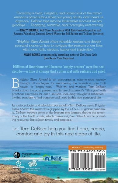 Brighter Skies Ahead challenges readers to reconnect with the person they were before becoming a parent and helps readers reconnect with a new purpose and passion in life after dedicating decades to raising a family.