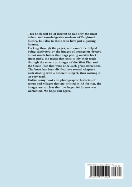 This book will be of interest to not only the most ardent and knowledgeable students of Brighton's history, but also to those who have just a passing interest. Flicking through the pages, one cannot be helped being captivated by the images of youngsters dressed in not much better than rags posing outside back street pubs, the trams that used to ply their trade through the streets or images of the West Pier and the Chain Pier that were once such great attractions. The book has been divided into several chapters each dealing with a different subject, thus making it an easy read. Unlike many books on photographic histories of towns and villages that are printed in A5 format, the images are so clear that the larger A4 format was warranted. We hope you agree.