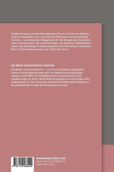 Brigitte Kronauers kunstvoll komponierte Prosa ist inhaltlich durch eine offensive Lust am Alltäglichen und - durchaus im Sinne einer neuen politischen Literatur - ein ästhetisches Engagement für die Belange einer bedrohten Natur charakterisiert. Der Band beleuchtet, wie Kronauer Nebensächlichkeiten und Naturdinge in multiperspektivischen Narrationen zusammenführt. Worin bestehen sie also, die "Tricks der Diva"?