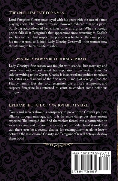 The cruellest fate for a man... Lord Peregrine Fitzroy once toyed with his peers with the ease of a man playing chess. His mother's treason, however, reduced him to a pawn. Surviving accusations of her crimes came at a price. When a foreign prince falls ill at Peregrine's first appearance since returning to English soil, he can't help but suspect the poison was henbane. The same poison his mother used to kidnap Lady Charity Cresswell-the woman now threatening to burn his life to ashes. ...is wanting a woman he could never have. Lady Charity's first season was fraught with scandal, but marriage and convenient widowhood saved her reputation from certain ruin. As lady-in-waiting to the Queen, Charity is in an excellent position to reclaim her status as a diamond of the first water... and plot revenge upon the Fitzroy family. But she, too, recognizes the prince's symptoms, and suspects Peregrine has returned to court to conduct some nefarious intrigue. Lives and the fate of a nation are at stake. Twists and secrets shroud a conspiracy to prevent the Crown's political alliance through marriage, and it is far more dangerous than anyone expected. The intrepid duo find themselves forced into a partnership to solve the crime and discover the identity of the hidden hand at work. But can there ever be a second chance for redemption-let alone love-between the star-crossed Charity and Peregrine? Or will betrayal destroy them both? Immerse yourself in the Diamond of the Ton Regency Mysteries-a slow-burn, forbidden enemies-to-lovers romance and espionage trilogy series that is clean but definitely not sweet. Perfect for fans of C.S. Harris, Anna Lee Huber, Deanna Raybourn, Ashley Gardner, Cara Devlin (and of course, Bridgerton). This new series is set in the same world as The Crown Jewels Mysteries. Discover the romantic historical mystery series readers can't stop raving about: Start with book 1: The Missing Diamond.