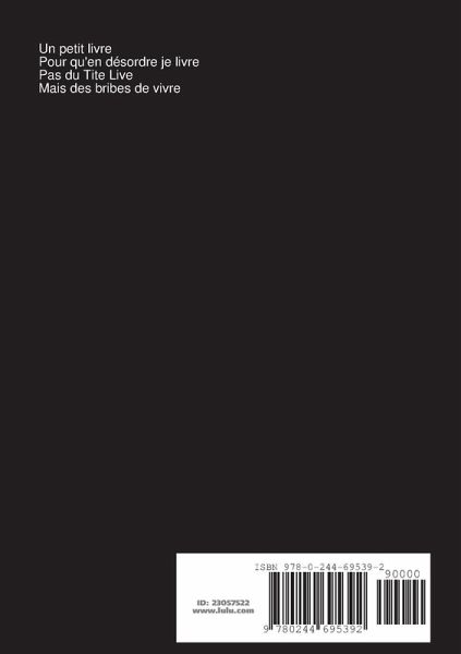 Ce livre de poésie est un ensemble de textes courts organisés à la manière du Tanka japonais. Il est structuré en quatre parties : - De Tout et de Rien - Dieu - L'amour - Le temps qui passe