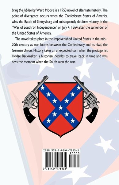 Bring the Jubilee by Ward Moore is a 1953 novel of alternate history. The point of divergence occurs when the Confederate States of America wins the Battle of Gettysburg and subsequently declares victory in the "War of Southron Independence" on July 4, 1864 after the surrender of the United States of America. The novel takes place in the impoverished United States in the mid-20th century as war looms between the Confederacy and its rival, the German Union. History takes an unexpected turn when the protagonist Hodge Backmaker, a historian, decides to travel back in time and witness the moment when the South won the war.