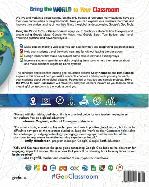 We live and work in a global society, but the only frames of reference many students have are their own communities or neighborhoods. Now you can expand your students' horizons and improve their understanding of how they fit into the global landscape using Google's Geo Tools. Bring the World to Your Classroom will equip you to teach your students how to explore and create using Google Maps, Google My Maps, Google Earth, Tour Builder, and more!