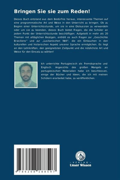 Dieses Buch entstand aus dem Bedürfnis heraus, interessante Themen auf eine programmatische Art und Weise in den Unterricht zu bringen. Ob zu Beginn einer Unterrichtsstunde, um sie in eine Diskussion zu verwandeln oder um sie zu beenden, dieses Buch bietet Fragen, die die Schüler an jedem Punkt der Unterrichtsstunde beschäftigen. Aufgeteilt in mehr als 20 Themen mit alltäglichen Bezügen, enthält es auch Fragen zur "Geschichte Brasiliens" und zur "Lusitanischen Welt", die ein Eintauchen in den kulturellen und historischen Aspekt unserer Sprache ermöglichen. Es liegt an den Lehrkräften, den geeignetsten Zeitpunkt und die nützlichste Art und Weise für den Einsatz zu wählen!