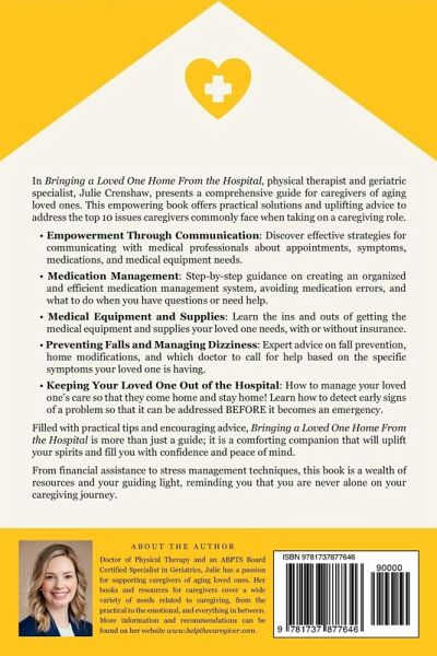 In "Bringing a Loved One Home From the Hospital," physical therapist and geriatric specialist, Julie Crenshaw, presents a comprehensive guide for caregivers of aging loved ones. This empowering book offers practical solutions and uplifting advice to address the top 10 issues caregivers commonly face when taking on a caregiving role. * Empowerment Through Communication: Discover effective strategies for communicating with medical professionals about appointments, symptoms, medications, and medical equipment needs. * Medication Management: Step-by-step guidance on creating an organized and efficient medication management system, avoiding medication errors, and what to do when you have questions or need help. * Medical Equipment and Supplies: Learn the ins and outs of getting the medical equipment and supplies your loved one needs, with or without insurance. * Preventing Falls and Managing Dizziness: Expert advice on fall prevention, home modifications, and which doctor to call for help based on the specific symptoms your loved one is having. * Keeping Your Loved One Out of the Hospital: How to manage your loved one's care so that they come home and stay home! Learn how to detect early signs of a problem so that it can be addressed BEFORE it becomes an emergency. Filled with practical tips and encouraging advice, "Bringing a Loved One Home From the Hospital" is more than just a guide; it is a comforting companion that will uplift your spirits and fill you with confidence and peace of mind. From financial assistance to stress management techniques, this book is a wealth of resources and your guiding light, reminding you that you are never alone on your caregiving journey.