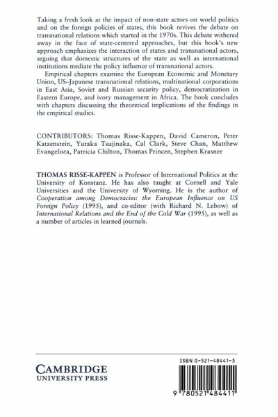 Taking a fresh look at the impact of non-state actors on world politics and on the foreign policies of states, this book revives the debate on transnational relations which started in the 1970s. This debate withered away in the face of state-centered approaches, but this book's new approach emphasizes the interaction of states and transnational actors, arguing that domestic structures of the state as well as international institutions mediate the policy influence of transnational actors. Empirical chapters examine the European Economic and Monetary Union, US-Japanese transnational relations, multinational corporations in East Asia, Soviet and Russian security policy, democratization in Eastern Europe, and ivory management in Africa. The book concludes with chapters discussing the theoretical implications of the findings in the empirical studies.