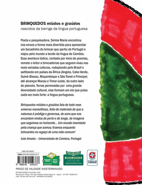 Poeta e pesquisadora, Selma Maria encontrou nos versos a forma mais divertida para apresentar um bocadinho do brincar que partiu de Portugal e viajou pelo mundo a bordo da língua de Camões. Essa aventura lúdica, contada por meio de poemas, remete o leitor a brincadeiras que seguem vivas nas mais variadas culturas, rodopiando pelo Brasil e saltitando em países da África (Angola, Cabo Verde, Guiné-Bissau, Moçambique e São Tomé e Príncipe) até alcançar Macau e Timor-Leste, do outro lado do planeta. Terras permeadas por uma grande diversidade cultural, elas formam um elo que pulsa cada vez mais forte: a língua portuguesa.