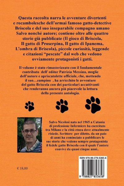 Questa raccolta narra le avventure divertenti e rocambolesche dell'ormai famoso gatto-detective Briscola e del suo inseparabile compagno umano Salvo nonché autore; contiene oltre alle quattro storie già pubblicate (Il gioco di Briscola, Il gatto di Proserpina, Il gatto di Ipanema, L'ombra di Briscola), piccole curiosità, leggende, e citazioni "pescate" dal web che vedono ovviamente protagonisti i gatti. Il volume è stato rimasterizzato con il fondamentale contributo dell' editor Patrizia Messina, moglie dell'autore e apriscatolette ufficiale, che, mettendo il suo...zampino, ha arricchito le avventure del gatto Briscola con dei particolari accattivanti che renderanno ancora più piacevole la lettura della presente antologia.