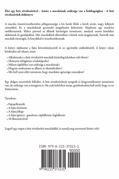 Élet egy brit rövidsz¿r¿vel - Amire a macskának szüksége van a boldogsághoz - A brit rövidsz¿r¿ek útikönyve A macska összetéveszthetetlen jellegzetessége a kis kerek fülek a kerek arcán, nagy, kifejez¿ szemekkel. Ez a macskáknak gyermeki megjelenést kölcsönöz. Majdnem egy mackóra emlékeztetnek. Ehhez párosul az állatok barátságos természete, amelyek szoros köteléket alakítanak ki gazdájukkal. Más macskákkal ellentétben a britek nem magányosak. Szeretik más macskák társaságát, és kutyákkal is összebarátkoznak. A könyv tájékoztat a fajta követelményeir¿l és az együttélés m¿ködésér¿l. A könyv olyan kérdésekre ad választ, mint:Alkalmasak-e a brit rövidsz¿r¿ macskák kizárólag lakásban való életre? Mennyire id¿igényes a kabátápolás? Milyen táplálékra van szüksége a macskának? Hogyan szoktassam az állatot az alomtálcához? Mit kell szem el¿tt tartanom, hogy macskám egészséges maradjon? Egy dolgot szeretnénk felfedni: A brit rövidsz¿r¿nek nyugodt és kiegyensúlyozott természete van, de szüksége van a mozgásra is. Ha csak beltérben tartja, gondoskodnia kell arról, hogy ez ne hiányozzon. Tartalom:Fajtajellemz¿k A fajta története A fajta jellege A fajta igényei - gondozás, táplálkozás, foglalkozás 10 illusztrációval Legyél egy csapat a brit rövidsz¿r¿ macskáddal, és tanulj meg szeretettel bánni vele!