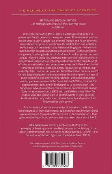 As the greatest imperial power before 1939 Britain played a leading role in the great post-war shift in the relationship between the West and the Third World which we call 'decolonisation'. But why did decolonisation come about and what were its effects? Was nationalism in colonial societies or indifference in Britain the key factor in the dissolution of the British Empire? Was the decay of British power and influence an inevitable consequence of imperial decline? Did British policies in the last phase of empire reflect an acceptance of decline or the hope that it could be postponed indefinitely by timely concessions? This book aims to answer these questions in a general account of Britain's post-war retreat from empire.